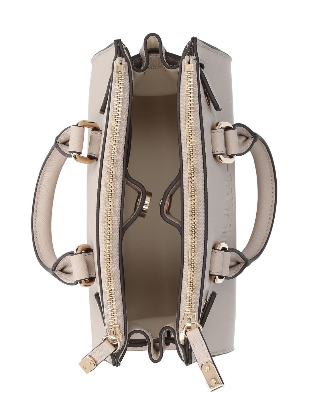 Il formato piccolo (23 × 11 × 18 cm) è ottimizzato da una doppia zip superiore che suddivide l’interno in due scomparti separati, perfetti per custodire tutto l’indispensabile in modo ordinato, come portafoglio, chiavi e make-up.