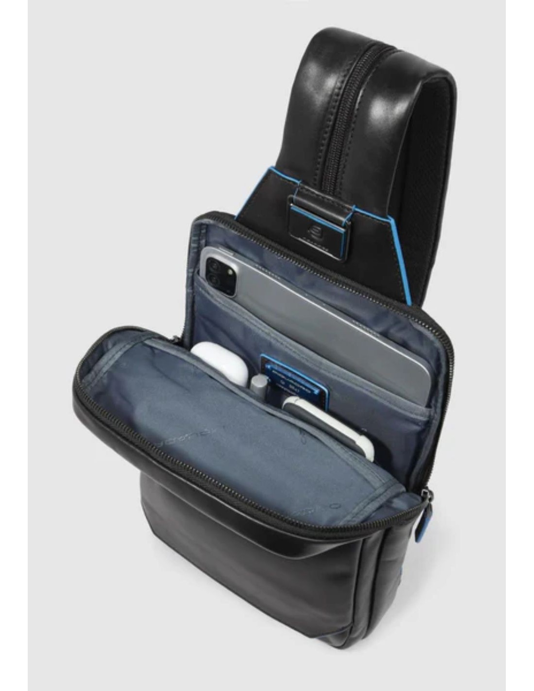 PIQUADRO Monospalla Portabile a Zaino Blue Square in Pelle
