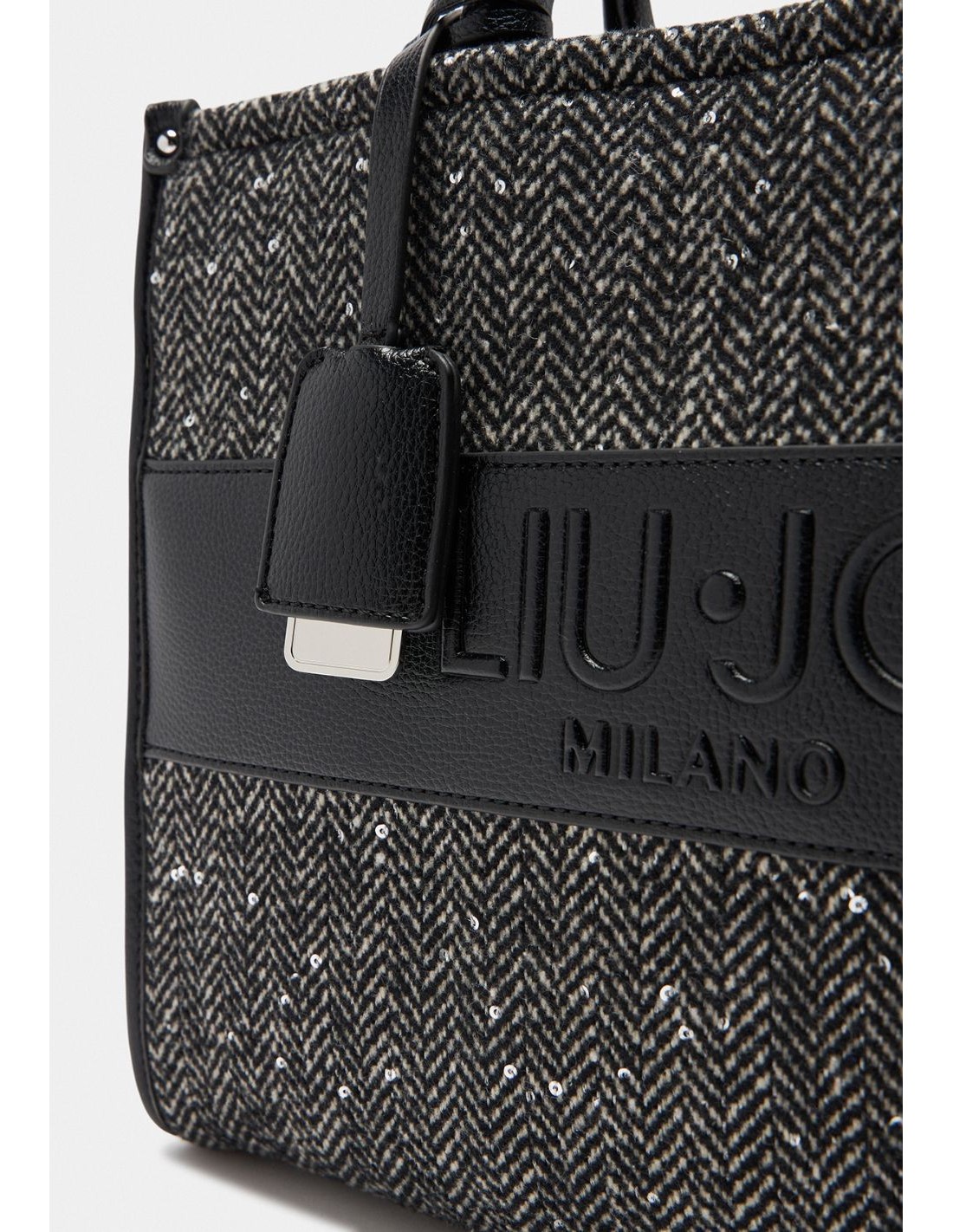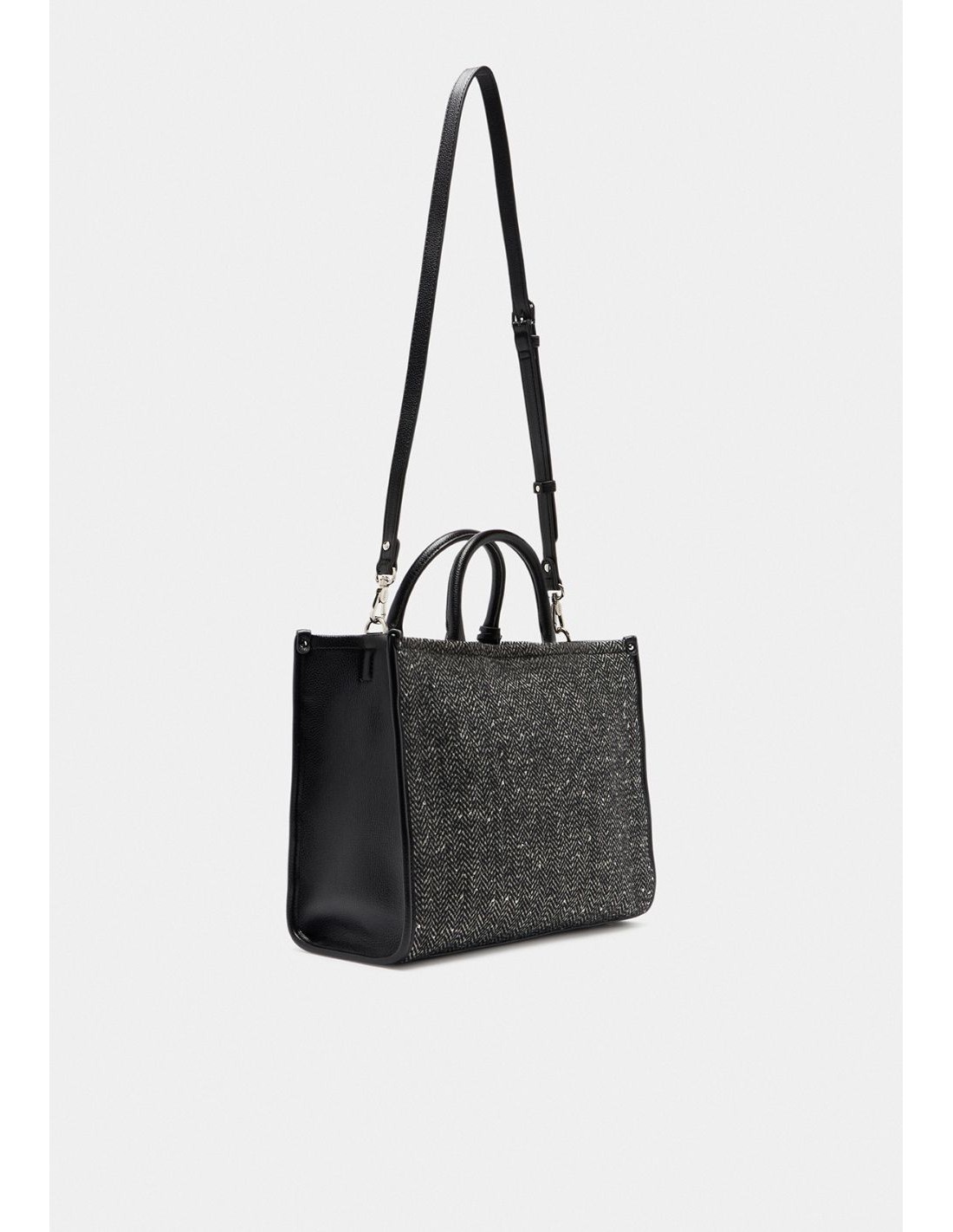 La tote bag media in tessuto chevron unisce stile raffinato e funzionalità, diventando un accessorio perfetto per illuminare i tuoi look quotidiani e le serate speciali.