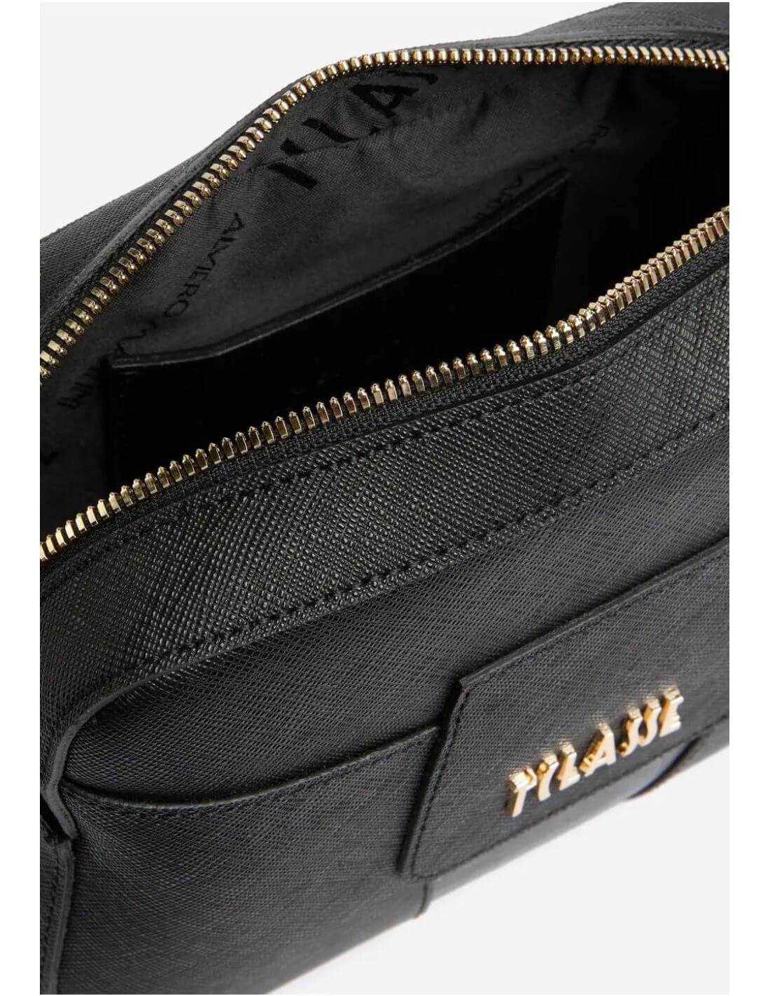 Funzionale e pratica, è dotata di tracolla regolabile in tessuto saffiano, che assicura comfort e versatilità durante l’uso quotidiano. All’interno offre un’organizzazione essenziale con una tasca interna e un portatessere logato, perfetti per custodire con ordine i piccoli oggetti indispensabili.