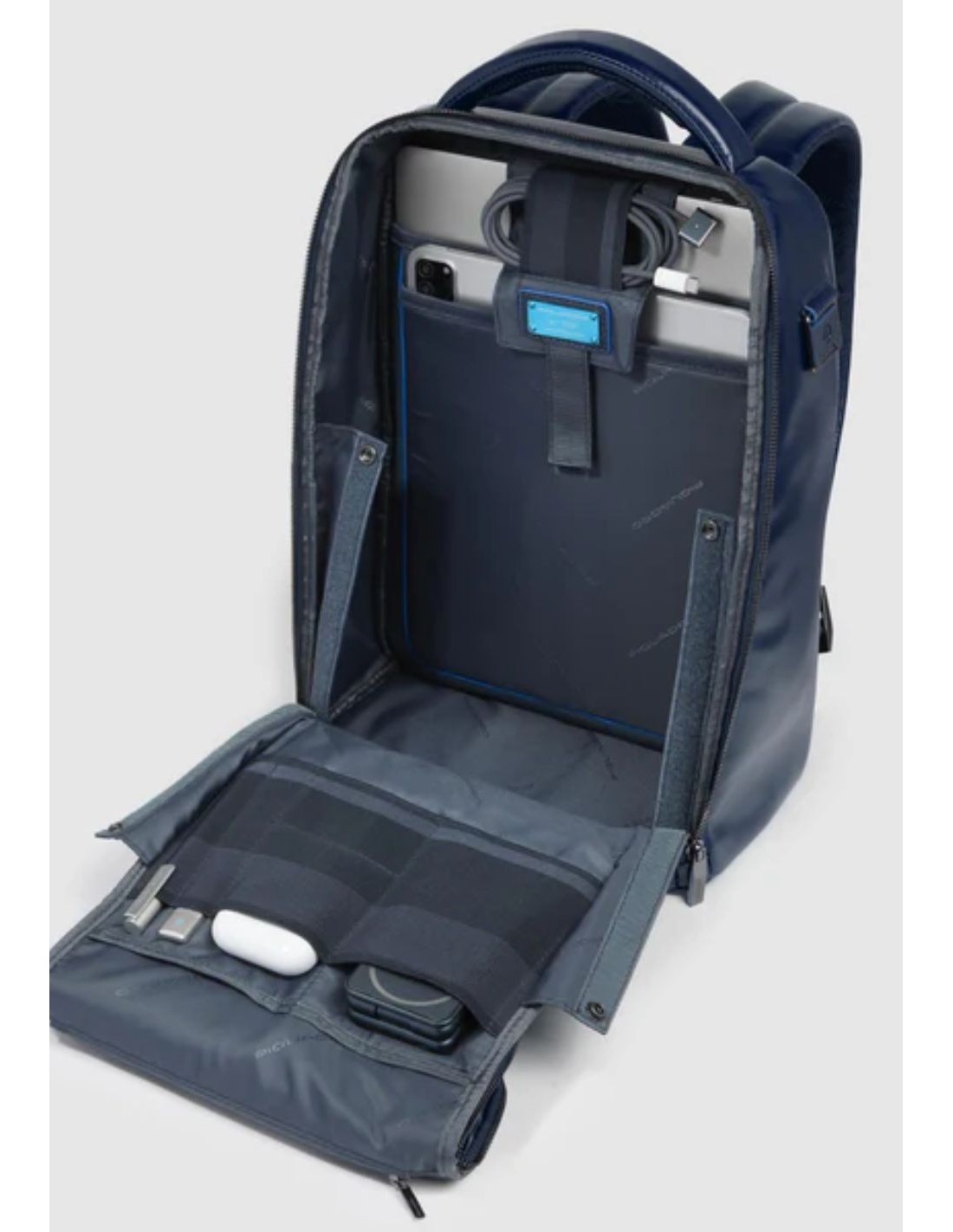 Zaino uomo in pelle Piquadro Blue Square con scomparto per notebook 14”, iPad® e accessori tech. Eleganza, innovazione e praticità in un solo accessorio.