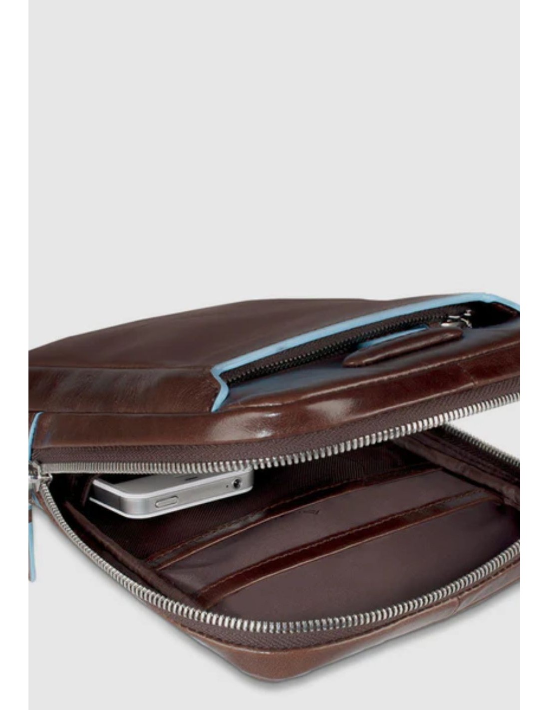 Borsello Piquadro Blue Square portabile anche come monospalla in pelle con scomparto porta iPad® mini fisso.