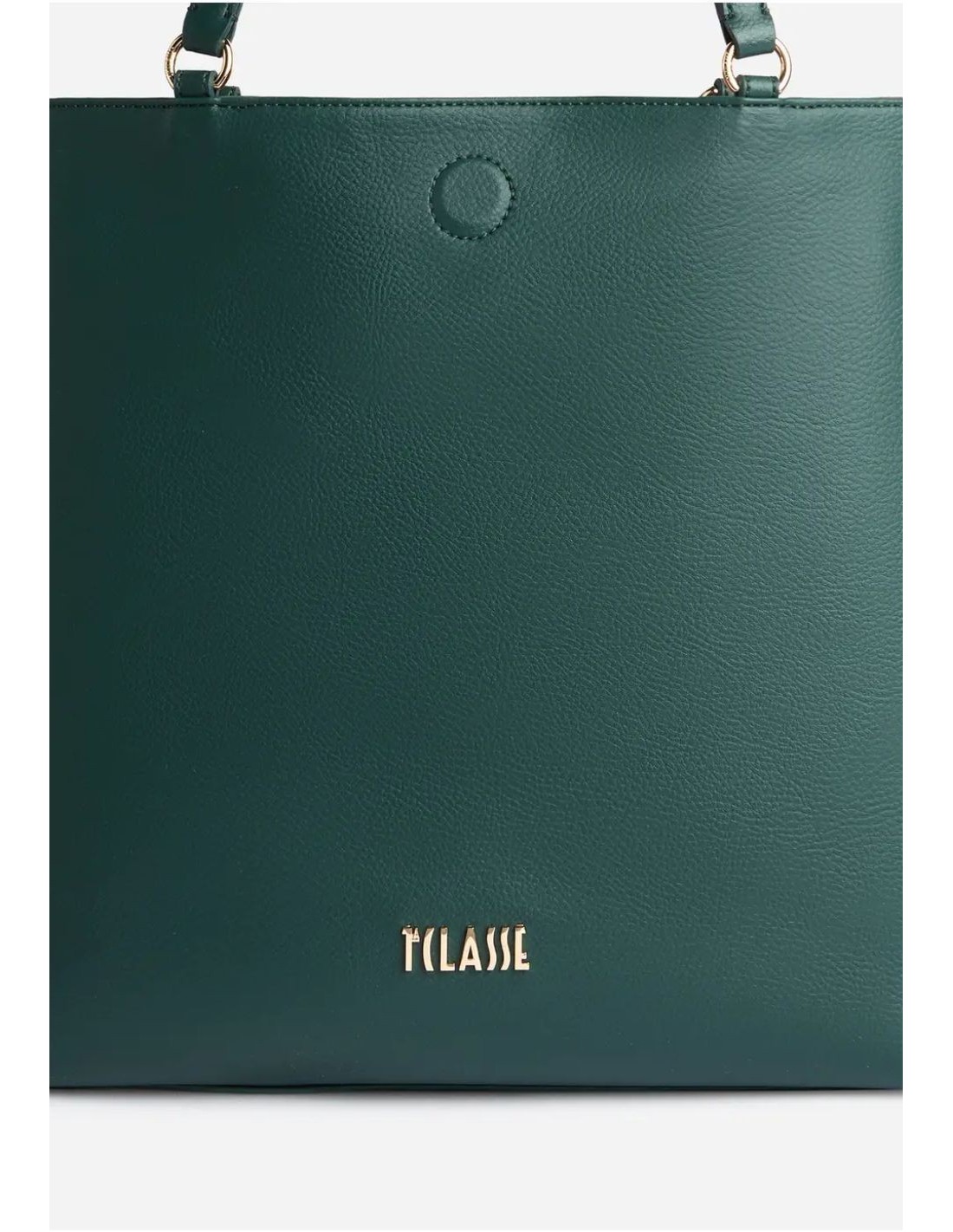 La borsa shopping Soft Twist di Alviero Martini 1ª Classe unisce versatilità e raffinatezza in un unico accessorio. Il suo design reversibile permette di scegliere ogni giorno un look diverso: da un lato la morbida eco pelle Verde Bottiglia, impreziosita dal logo 1ª Classe dorato; dall’altro, il caratteristico tessuto soft con stampa Geo Classic, arricchito da una tasca con zip e da un portatessere coordinato.