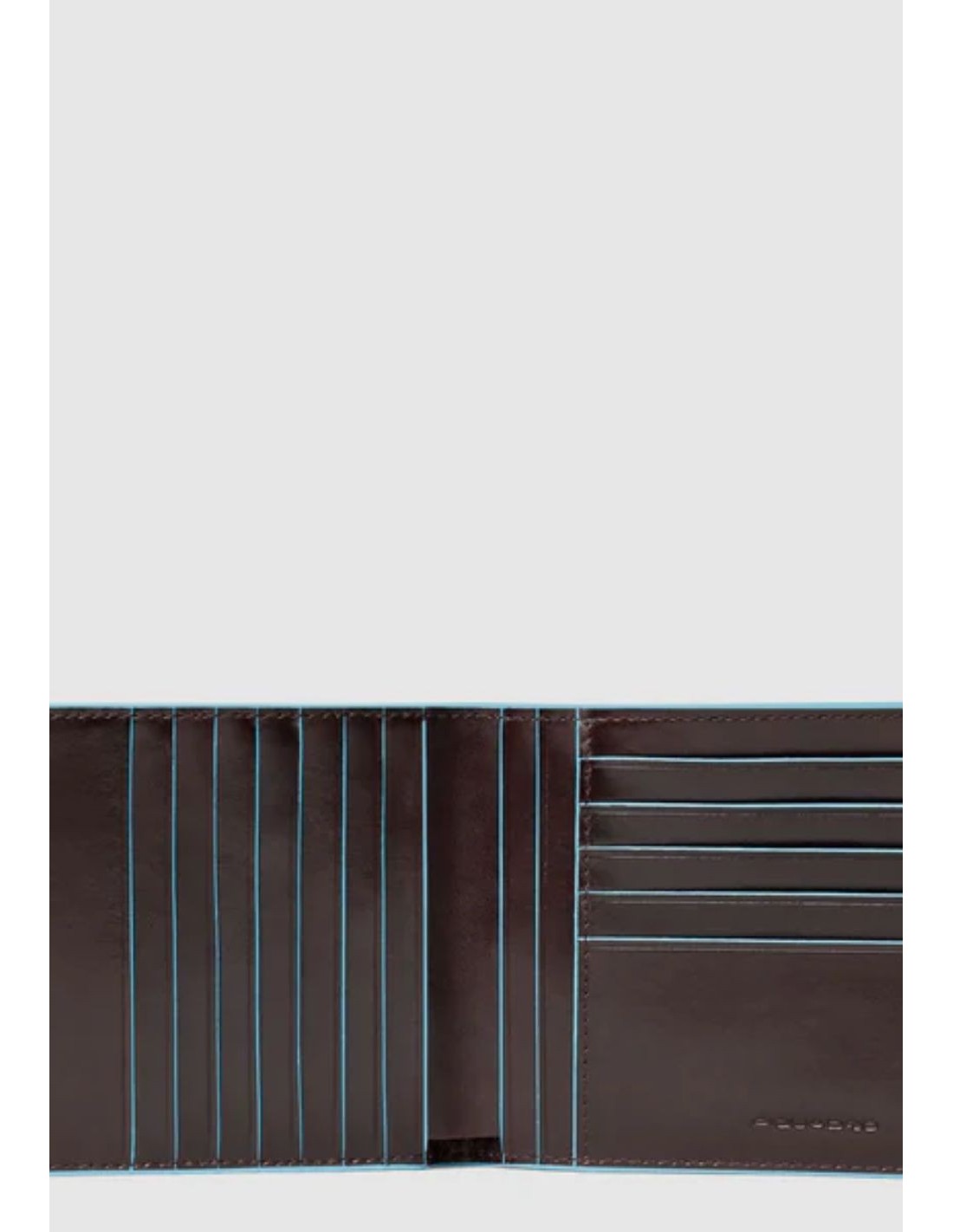 Portafoglio uomo sottile (senza portamonete) Piquadro Blue Square in pelle con 16 fessure per carte e protezione RFID. Compatto, sicuro e funzionale.