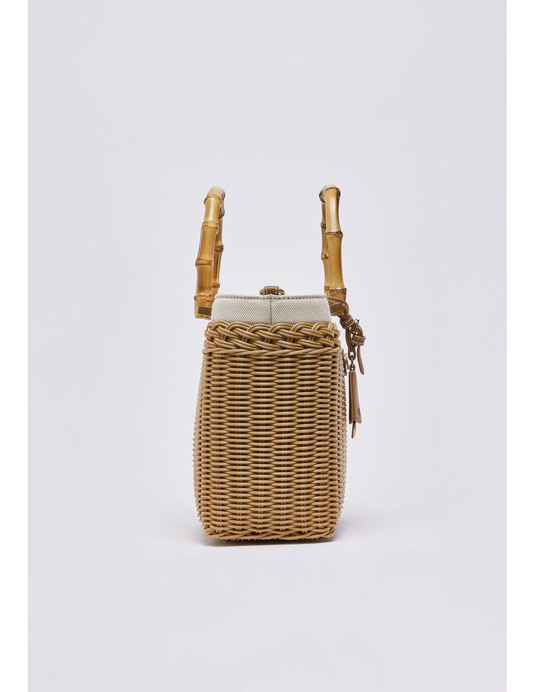 Fresca e raffinata, questa borsa piccola in rafia interpreta lo stile estivo con un equilibrio perfetto tra naturalezza e dettagli ricercati. La texture intrecciata dona leggerezza visiva, mentre i manici in bamboo aggiungono un tocco distintivo dal gusto sofisticato.