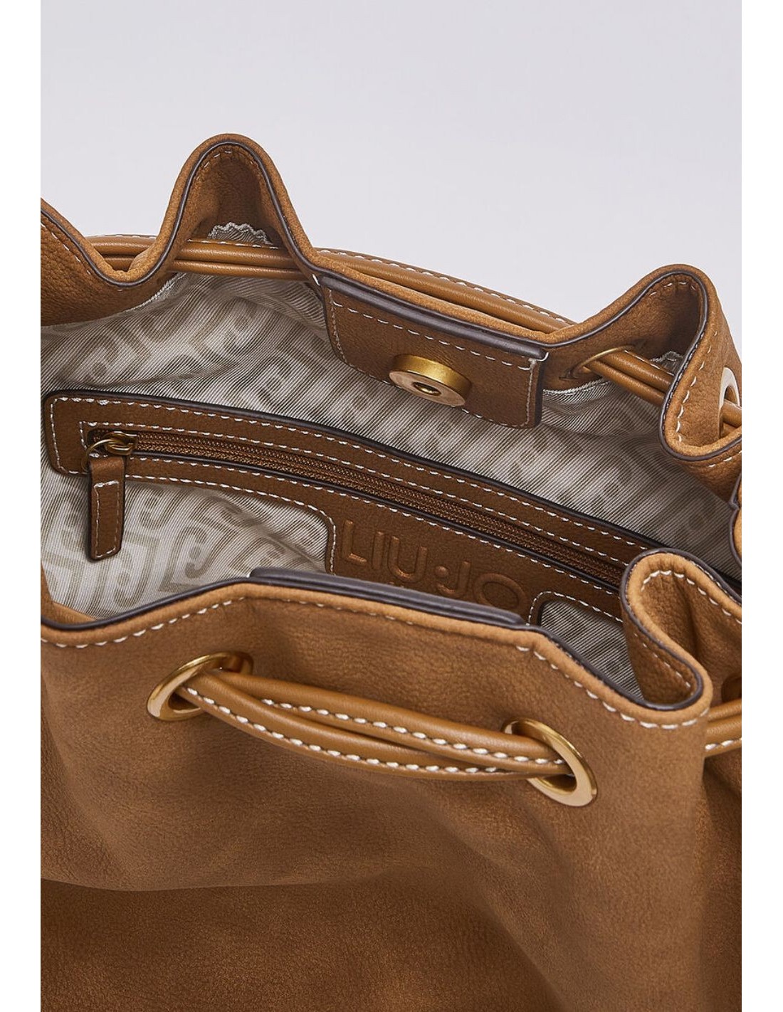 Lo scomparto centrale offre spazio sufficiente per gli oggetti quotidiani, mentre la fodera interna logata completa il design con un tocco di qualità. Grazie alla tracolla, la borsa si presta a un utilizzo pratico e versatile, ideale per accompagnare look urbani, casual chic o outfit più minimal.