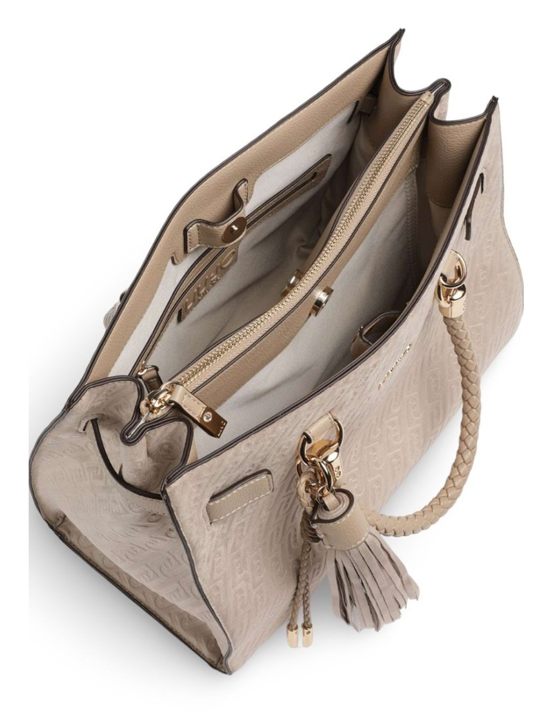Elegante e strutturata, questa borsa satchel Liu Jo in camoscio sintetico è pensata per chi cerca un accessorio raffinato ma funzionale. La superficie morbida è arricchita dal monogram impresso all-over, che dona profondità e un’identità distintiva al modello.