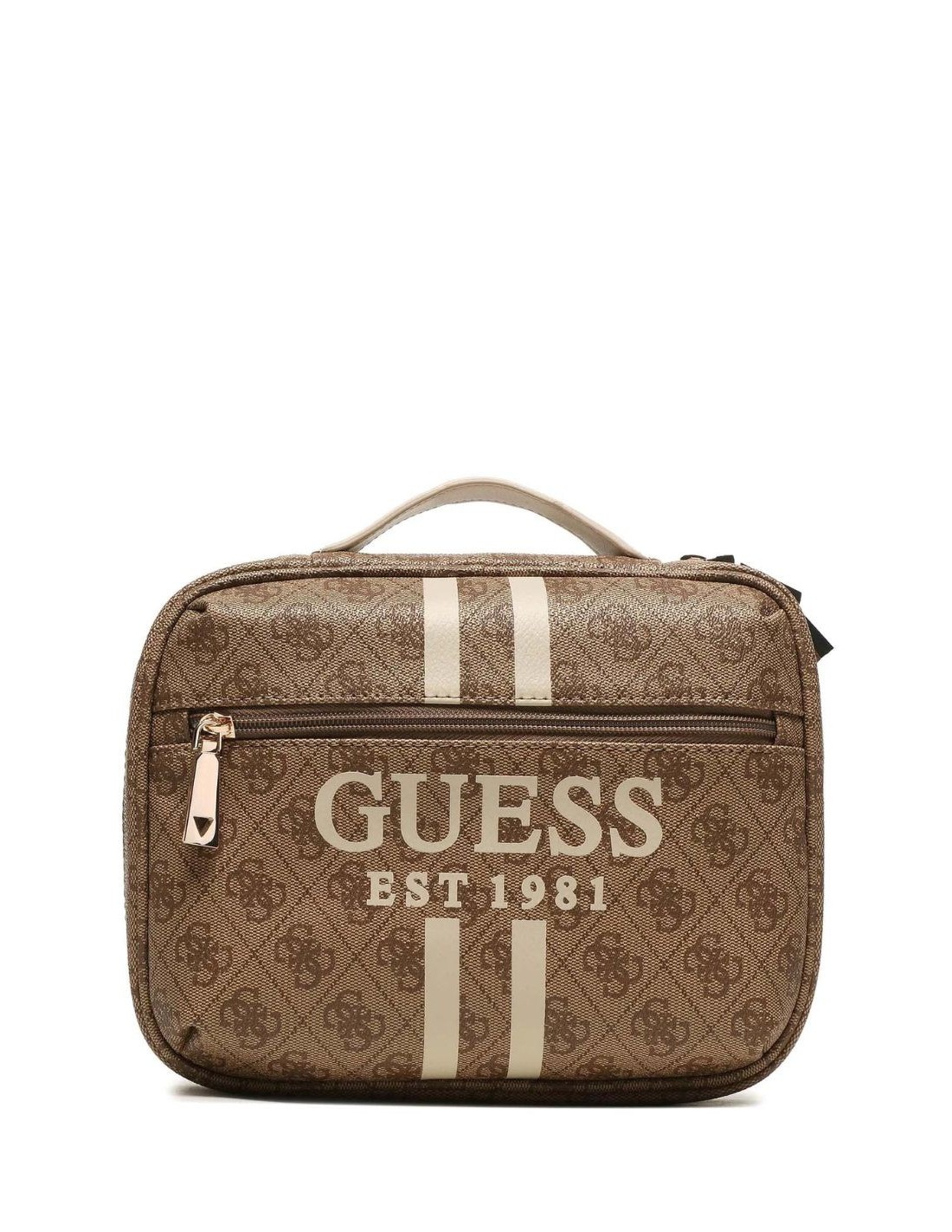 Funzionale e dallo stile distintivo, questo beauty case Guess in ecopelle è pensato per accompagnarti con eleganza in ogni occasione. La superficie è valorizzata dalla stampa 4G logo all-over, arricchita da una fascia a contrasto con scritta logo frontale, che dona carattere e riconoscibilità al design.