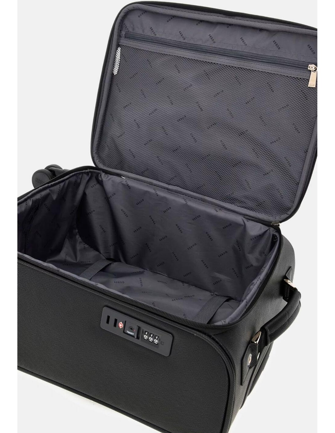 Uno dei punti di forza è la tasca frontale con zip, affiancata da tasche multiple, perfette per avere a portata di mano documenti e accessori. L’interno è organizzato con cinghie di compressione e fodera logata, per mantenere tutto in ordine durante gli spostamenti.